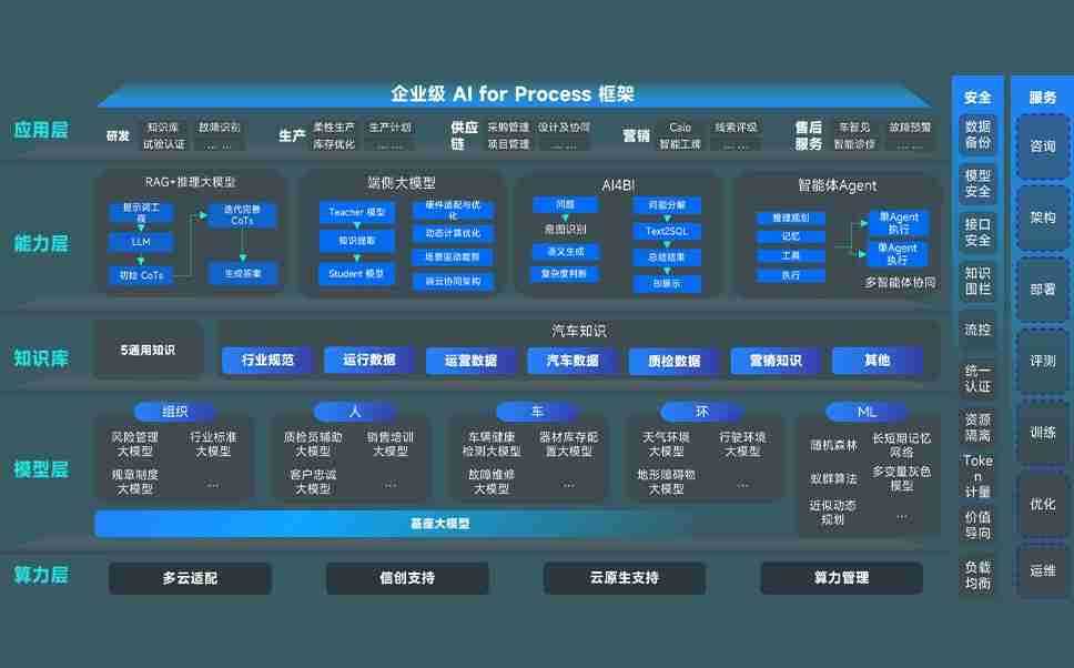 新航娱乐问学智车解决方案是一套基于AI技术的汽车行业智能化系统,,,,覆盖从底层算力到顶层AI应用的全栈方案。。方案由算力层、、、、模型层和应用层组成:算力层,,方案支持多种一体机配置,,,,具备云端灵活部署、、、多云适配以及动态优化计算资源的能力;模型层,,,新航娱乐问学平台版提供了企业级AI应用一站式构建与管理平台,,,支持基于后训练强化技术的汽车企业专属模型的训练、、、、评测和运营;应用层,,,新航娱乐问学DeepSeek版提供包括超级员工、、、、智能招采、、、智能营销、、、、智能客服、、、、AI for BI等一系列解决方案,,可助力汽车行业实现数字化转型,,,,让管理更智能、、响应更敏捷。。